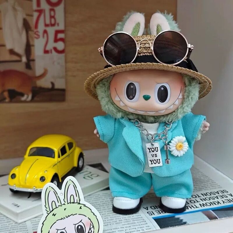 15-17cm Labubu sitting baby clothes racing suit cute set/handmade