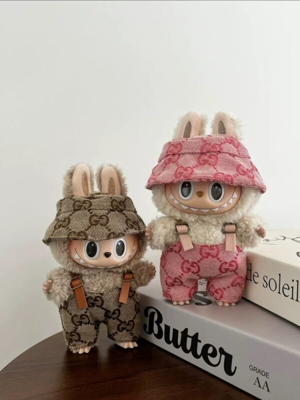 15-17cm Labubu doll clothes macaron overalls hat set / handmade customization